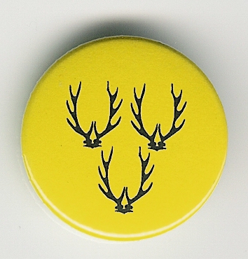Trojí černé paroží na žlutém podkladu.